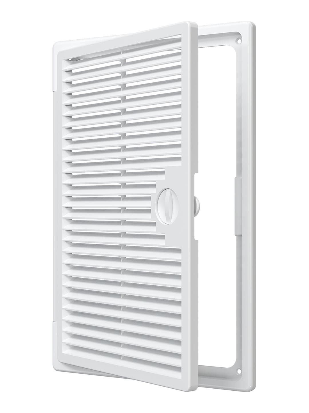 Пластиковые накладные вентилируемые люки-декофоты ДФ устанавливаются на поверхность стены. Оснащены ручкой-задвижкой для удобного открытия дверцы. ДФ является декофотом, т. е. совмещает в себе функции люка и решетки. Благодаря этому объединению не нарушается естественная вентиляция пространства. Декофот монтируется поверх стены или другой поверхности. Благодаря этому ДФ можно устанавливать на ревизионные отверстия с неровными краями – главное, чтобы размеры отверстия были меньше монтажных размеров люка. Если люк требуется установить выше уровня глаз, рекомендуется установка жалюзи вверх, так чтобы они скрывали отверстие. Если же люк требуется установить ниже уровня глаз, то жалюзи должны быть направлены вниз.