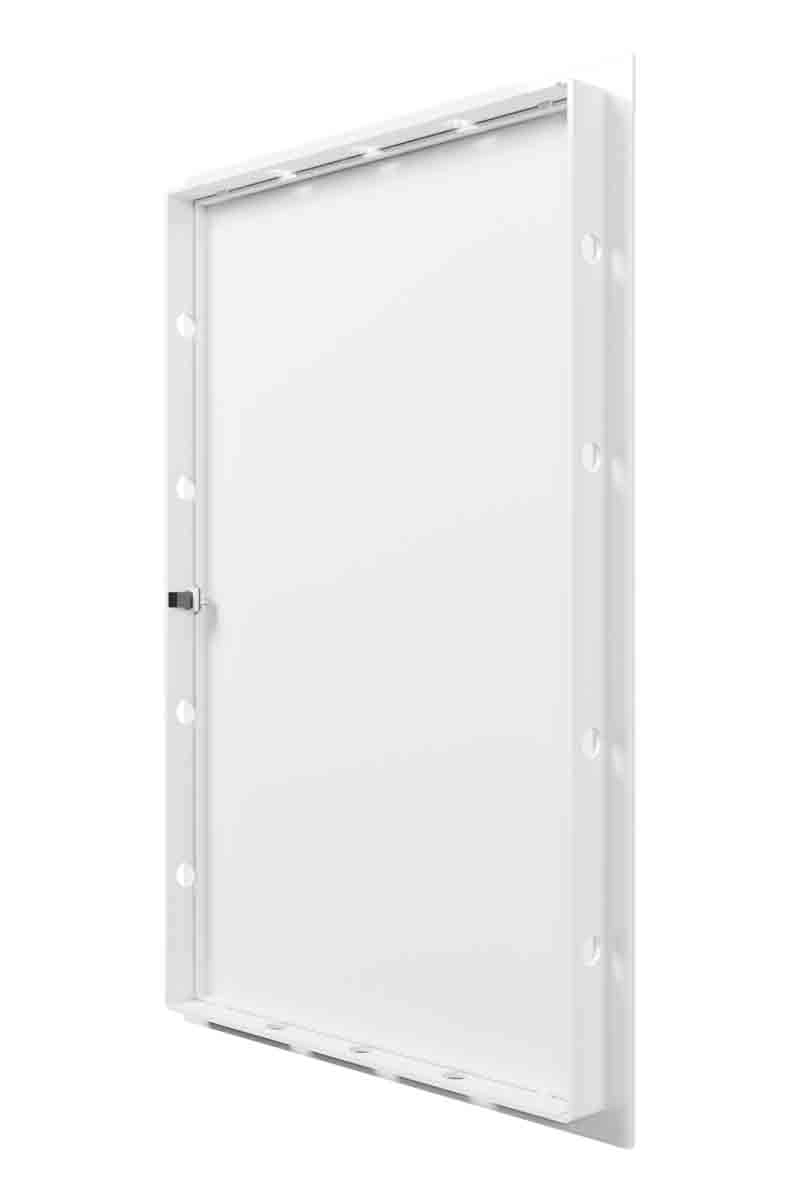 Люк ревизионный LN обеспечивает скрытие и удобную ревизию приборов учета, узлов и инженерных коммуникаций, а также быстрый доступ к ним. Люк возможно использовать в помещениях с повышенной влажностью, т.к. его корпус изготовлен из высококачественного ABS-пластика, который не желтеет со временем. Благодаря встроенному механизму люк открывается и закрывается легким надавливанием на углубление в дверце. Замок выдерживает до 30000 нажатий, эксплуатируется при температуре от - 10 до + 50 ℃. Нажимной замок фиксирует дверцу, не позволяя ей самопроизвольно открываться, за счет чего люк устанавливается не только в стену, но и в потолок. Монтаж производится с учетом левостороннего или правостороннего открывания. Люк крепится с помощью клея или саморезов. Люки LN представлены также в черном и сером цветах.